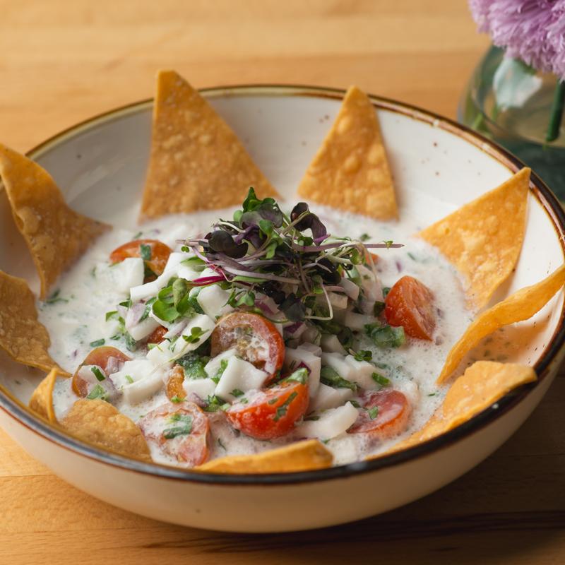 The shrimp ceviche and plantin chips I had at this place were delicious. The cocktail drinks wereShrimp Ceviche also nicely put together. Great place definitely worth checking out.